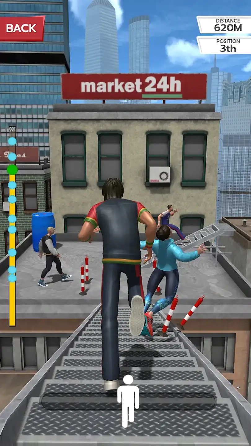 多样且具有挑战性的关卡:在设计精美、充满惊人挑战的关卡中穿行。遇到一切,从湿滑的台阶到可能在你脚下倒塌的平台。每场比赛都会引入新的障碍,考验你的反应和策略,无论是避开危险还是智胜竞争对手。