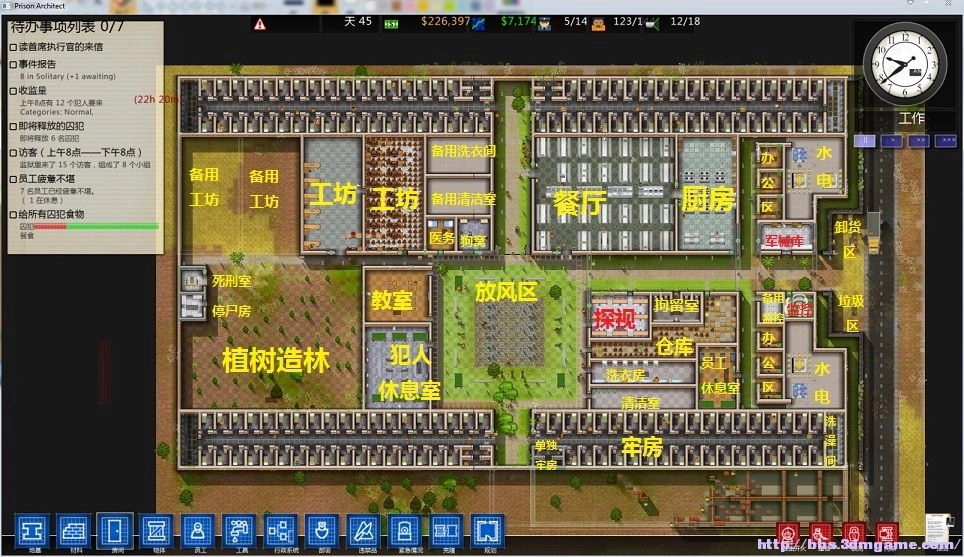 以全知视角对监狱进行合理规划与建设,并实时监控每一位犯人的所有行为举止