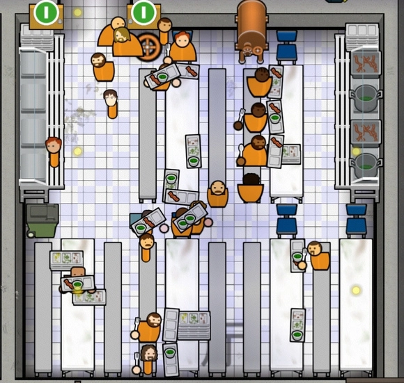 整座监狱没有建成全封闭的院落,围墙要么没建,要么不够严密,这就导致在“部署”界面里,牢房区会显示为闪烁的黄色区块,而犯人在这种情况下是无法自由行动的。