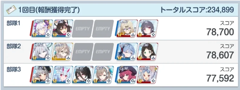 第三队只要选神秘属性的输出型全明星角色就行,老鼠的ex技能不用开启。(要是有若藻这类主c的话,搭配一个若藻再加上全队辅助开大,得分肯定会比这个高)