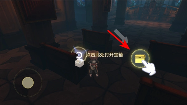 移动到宝箱附近后,点击宝箱所在区域,这是获取宝箱奖励的关键步骤,打开宝箱就能得到相应的道具,为后续的场景探索和关卡挑战提供帮助。