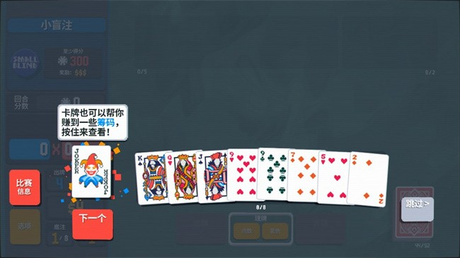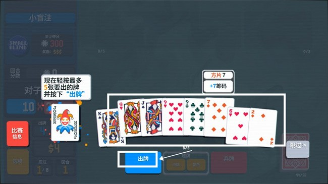 在耗尽所有出牌机会前,积攒300筹码即可获得本回合的胜利。