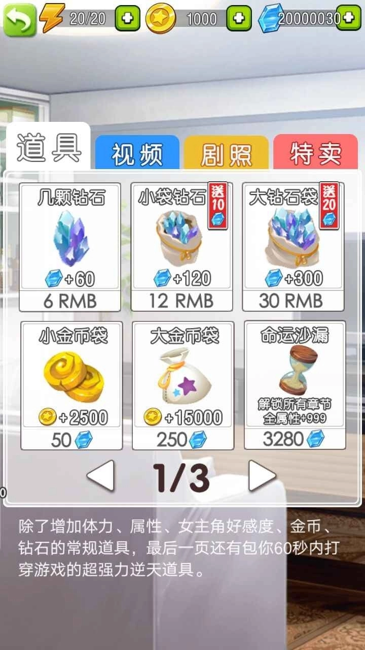 内含各种女神角色和各种服装,和自己所喜爱的角色来一场浪漫的约会。