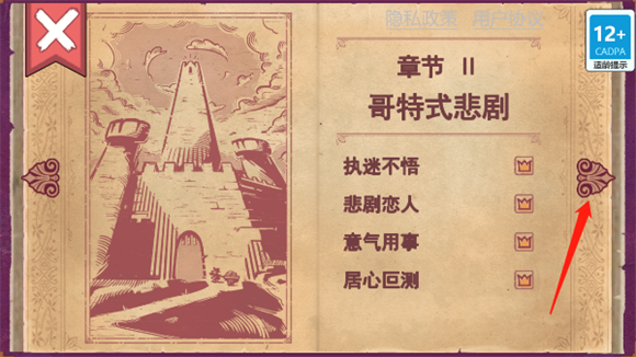 进入游戏界面后,点击右侧的图标,即可进入下一个章节。