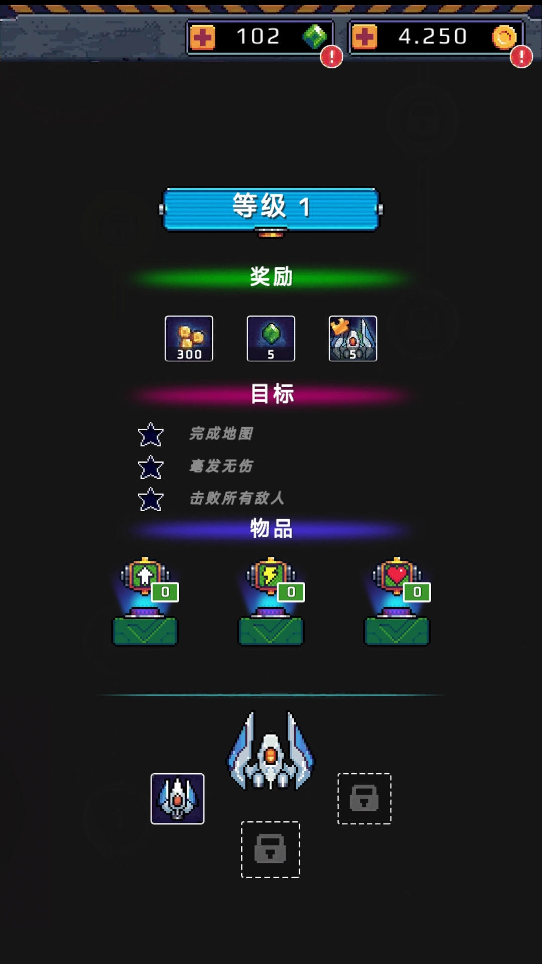 3、全新升级系统:游戏内配备了全新的升级机制,玩家可通过完成任务与击败敌人获取经验值和奖励。经验值能够用于增强战机的性能与能力,奖励则可用来解锁新战机和新武器。该升级系统为玩家拓展了更多发展与成长的空间,进一步提升了游戏的可玩性。