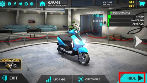 完成每一关的任务目标,就能获取摩托奖励与金币,这些可以用来升级和改装你的爱车。