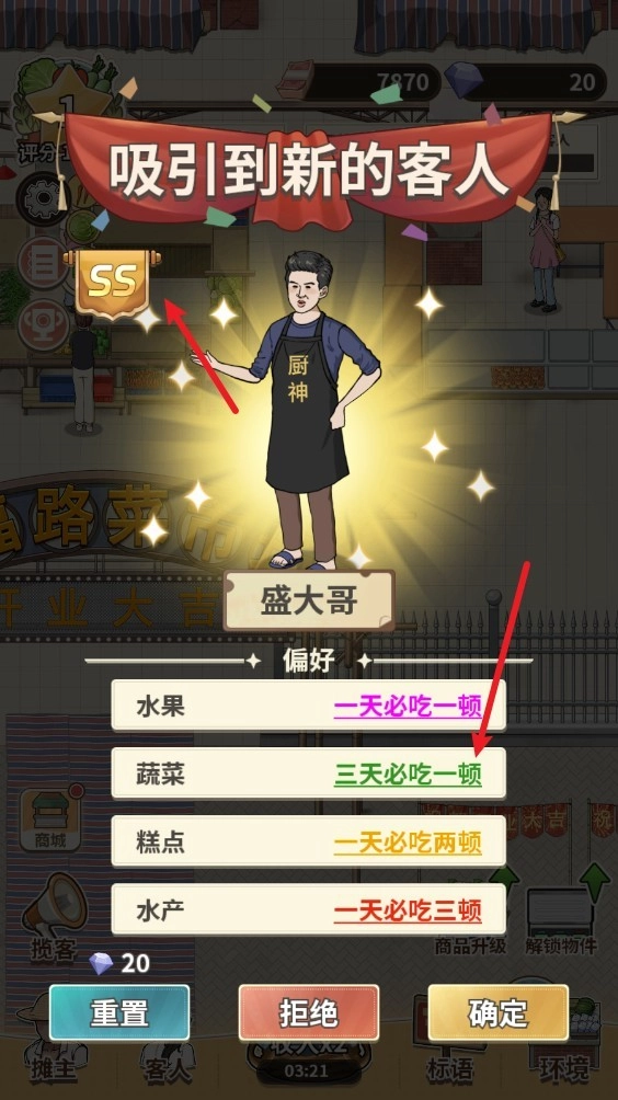7、持续优化经营环境评分,等级提升后还能解锁更多收入加成,助力摊位不断发展壮大。