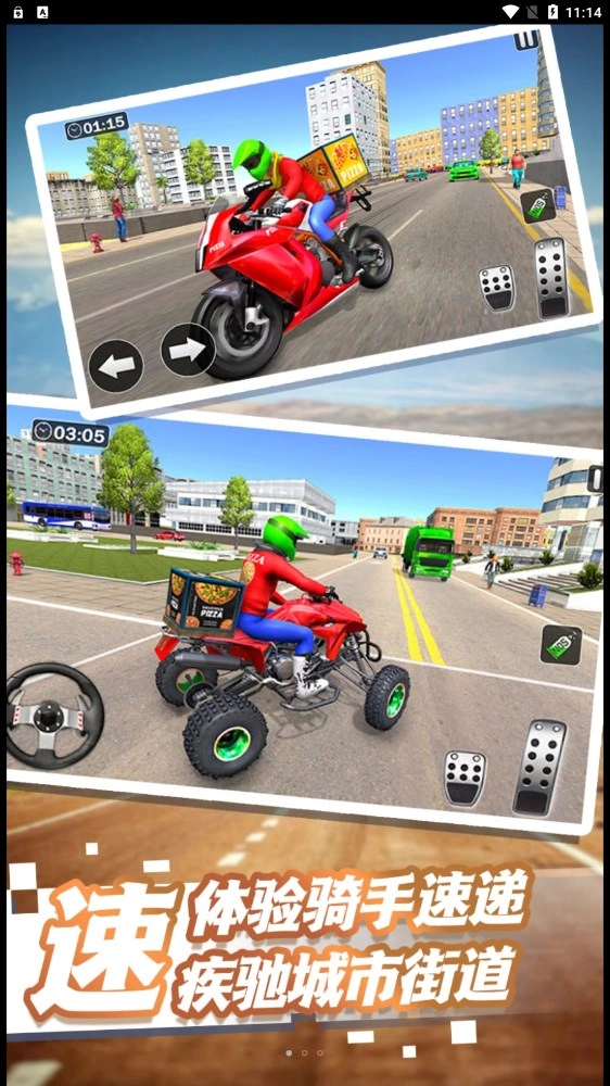 3,订单数量多,机车持续升级,享受挑战的过程,还能收获更多惊喜,体验刺激的摩托驾驶,同时要处理路障与危险,把外卖安全送达。
