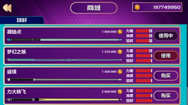 完成挑战就能解锁球杆,开启更精彩的台球体验,打造属于自己的专属球杆