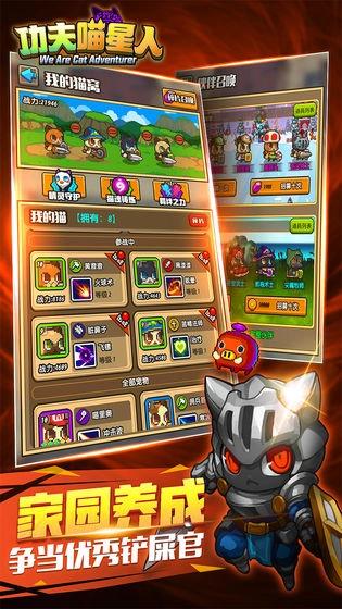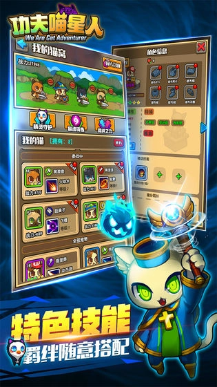 功夫喵星人这款游戏里设置了各式各样丰富的关卡与内容,能让众多玩家去挑战不同的角色和关卡,以此获取更多游戏资源与场景;玩家在游戏中还能探索冒险各类游戏场景,提升自身游戏等级,逐步解锁更多资源。