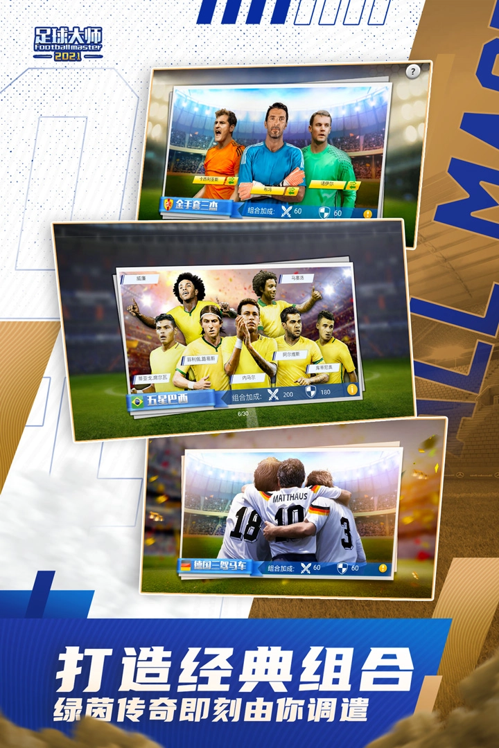 足球大师黄金一代是一款融合策略与角色扮演元素的足球经理人RPG游戏,玩家将在游戏里化身足球经理人,借助组建球队、规划战术、培育球员等策略手段,率领球队征战全球各类联赛,角逐各项荣誉。
