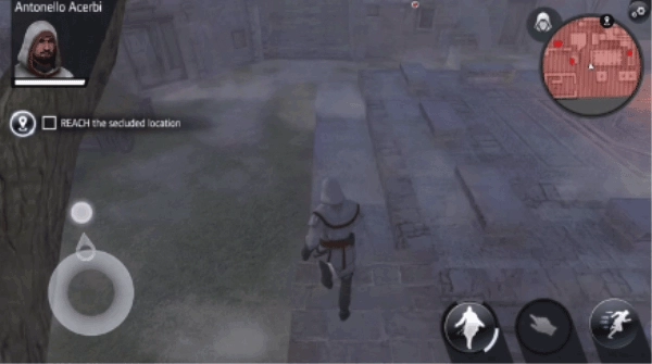 1、一种是类似PC平台上点击行走的模式,另一种则是常见的模拟双摇杆模式。为适配这种特殊操作模式,攀爬、下跳、翻越等动作均被简化,只需跑到障碍物附近就能自动做出相应动作;刺杀动作则调整为点击敌人头部上方的骷髅图标来完成。