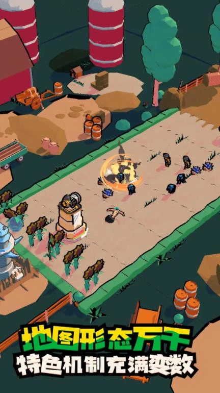 这是一款挺有意思的肉鸽塔防游戏,玩家可以操控主角,敌人进入攻击范围后主角会自动开火。用一根手指就能控制主角移动,游戏开始需要先建造主堡,接着是矿场和其他各类炮塔,虽然炮塔位置是固定的,但可以通过搭建栅栏等手段来改变敌人的行进路线,玩法自由度相当不错。炮塔升级有不同的养成方向,能组合出多种流派,而且根据炮塔摆放位置的差异,战斗策略也会衍生出不少变化。游戏的引导系统比较完善,主要功能都介绍得很清楚,建造炮塔的操作方式类似一些休闲小游戏,新手也能轻松上手。关卡地图的设计颇为巧妙,部分炮塔位置得依靠道具才能抵达,甚至连跳床都藏在建筑的阴影里,带有一定的探索乐趣。游戏还配备了超级武器,等能量蓄满就能使用,用来对付BOSS效果显著,只要瞄准得当基本就能顺利通关。