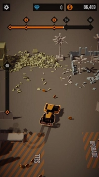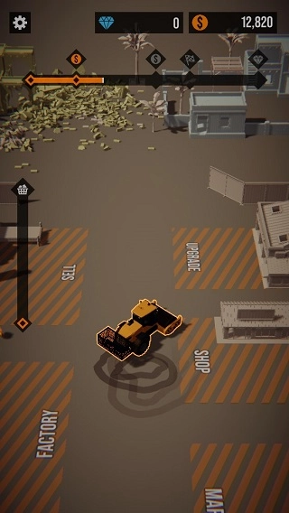 累计获得的兑换金币,既可以在图中黄色导流线所在区域进行升级操作,也能前往商场选购新的拆迁设备和机器。