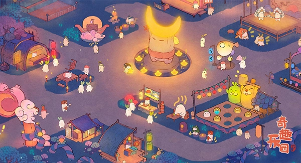 游戏采用国画错落留白的手法设计地图布局,搭配《千里江山图》的青绿画风,为玩家营造出一种世外桃源般的美感。不过这并非游戏的核心内容,而是与田园生活玩法巧妙融合——比如劳作一天后,玩家能把心愿寄托在DIY花灯上,让月夜与星空聆听自己的心声;也可以和萝卜人一同观星,通过形状辨认并命名不同星系,尽享惬意时光。