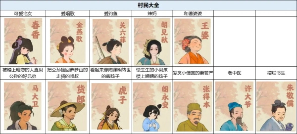 要增进和村里乡亲们的亲近感,第一步自然是得把大家都认清楚才行~我特意整理了一份精简版的村民信息汇总,方便快速了解大家。
