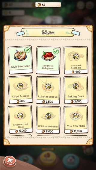 在游戏里研发各类餐食并在店铺中进行售卖,同时对食物进行升级以提升它们的属性。