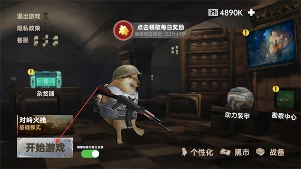 打开游戏的主页界面后,点击“开始游戏”按钮,即可进入火线战场。