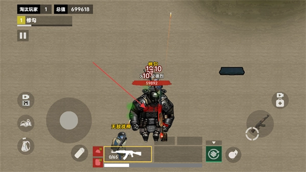 通过拖动右下角的开火按钮,来操控枪械的射击方向以攻击敌人。