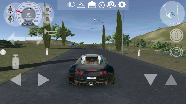 左侧负责操控车辆的行驶方向,右侧则用来控制点火、油门以及倒车操作,而在界面的上方顶部区域,还能够对视角和车辆灯光等功能进行调节。