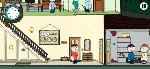 玩家得在限定时间里控制主角移动,去探索房子,躲开客人,尽量抓住机会,防止出现尴尬的状况。