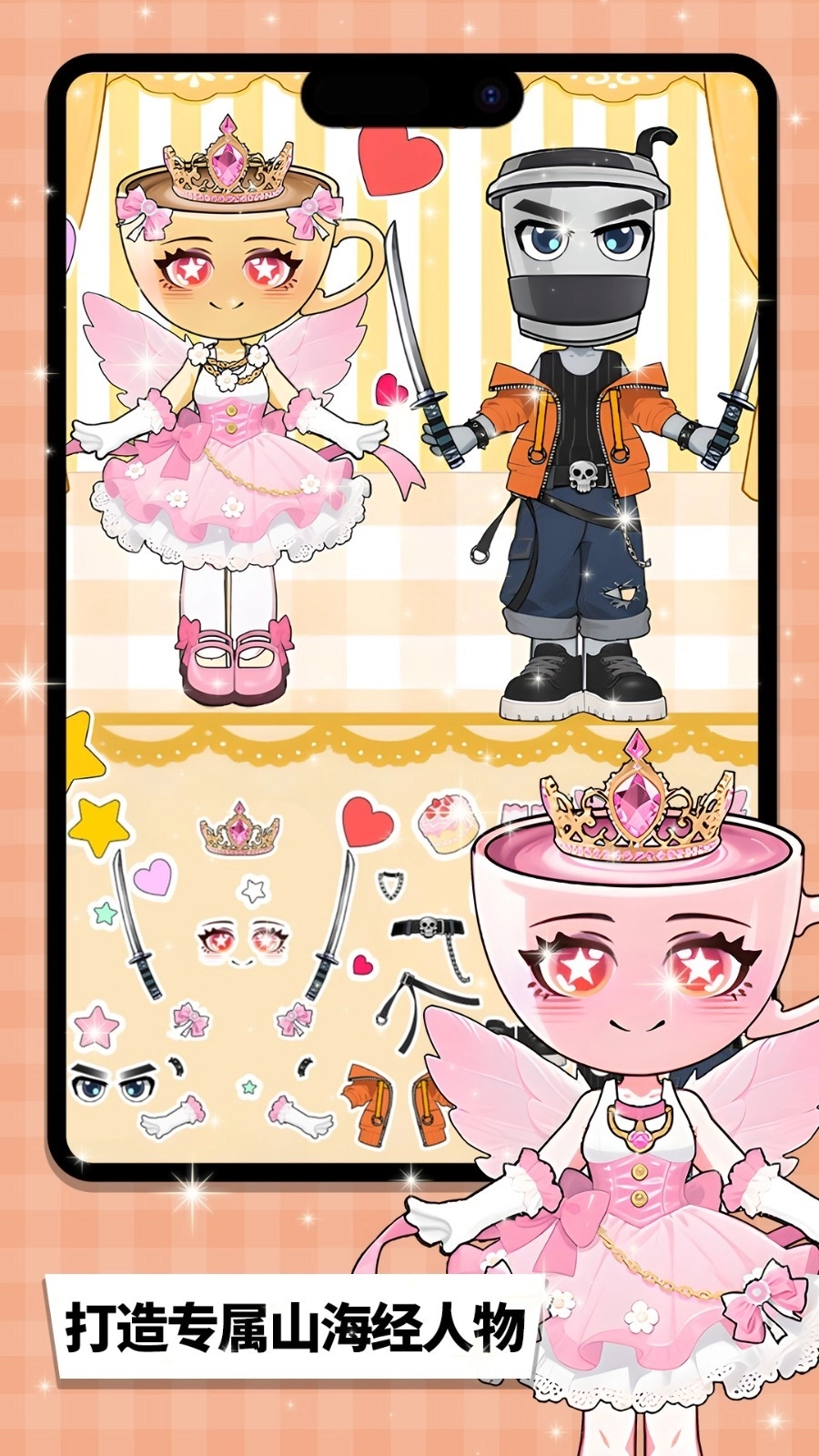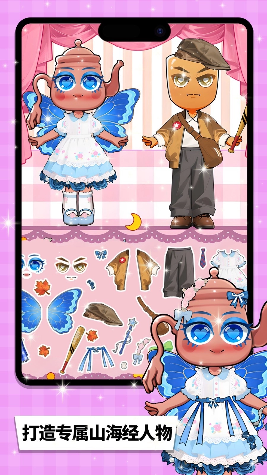 2、在角色装扮关卡中,从底部的素材栏里挑选发型、服饰等元素,依据角色的轮廓来完成精准匹配,借助拖拽的方式调整部件的位置,从而实现完美贴合的效果。