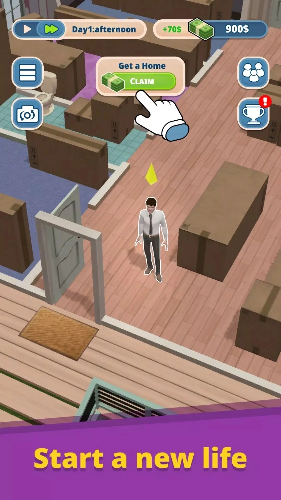 1、完成角色创建后,接下来会进入住宅规划的环节。此时需要依据初始资金,对家具家电进行合理的配置安排,并且通过优化空间布局,来打造出具有个性化特点的居住环境。