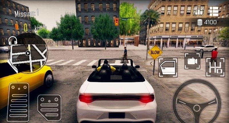 3、借助油门与刹车按钮调控车辆速度,通过方向盘按钮来调整车辆的行驶方向。