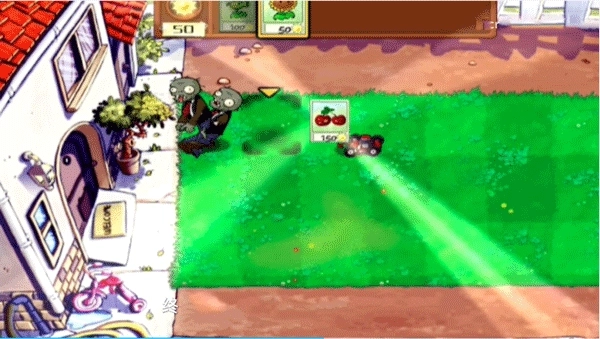1.在草坪上种植不同功能的植物抵御僵尸进攻。