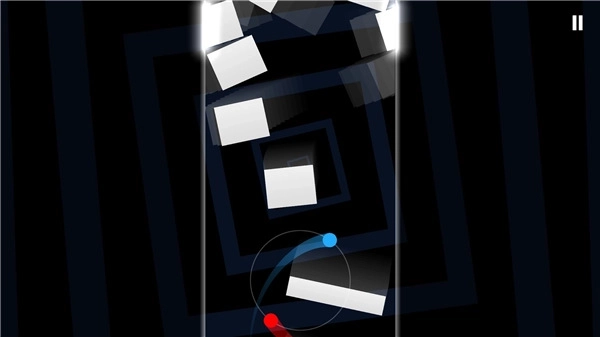 核心玩法的关键在于“双轨协同规避”机制:红色与蓝色两个球体沿着同心圆轨道保持恒定速度移动,玩家借助左右触控操作来控制整个轨道的旋转角度。各种障碍物会以不同的朝向、间距和速度切入球体的移动路径,玩家需要在旋转轨道的过程中,精准计算两个球体与障碍物之间的相对位置,保证任意一个球体都不会接触到白色的障碍物结构。游戏失败的原因往往并非操作失误,而是对时机的判断出现了0.1秒的细微偏差。