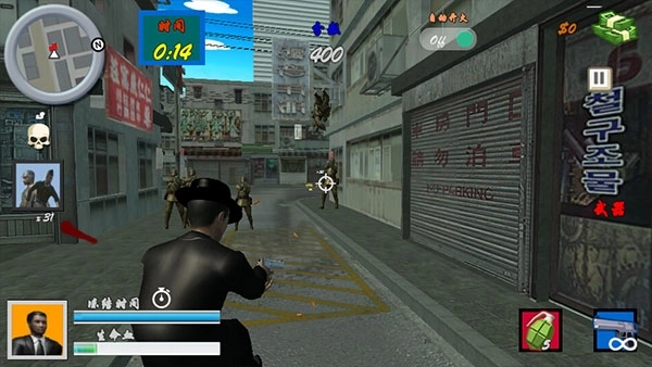 1、操作采用双区域设计:左侧虚拟摇杆负责控制移动,右侧区域通过滑动来调整准星位置,松开手指便会自动触发开火。这一机制十分考验玩家对敌人集群动向的预判能力以及瞬间反应的精准度,敌人会从街巷、屋顶、车辆后方等多个方位发动突袭,玩家需要时刻维持灵活的战术走位并确保火力能够全面覆盖目标区域。