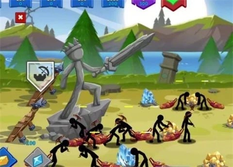 通过积攒金币来强化兵种属性,组建更具战斗力的火柴人军团,从而增强在战场上的掌控力。