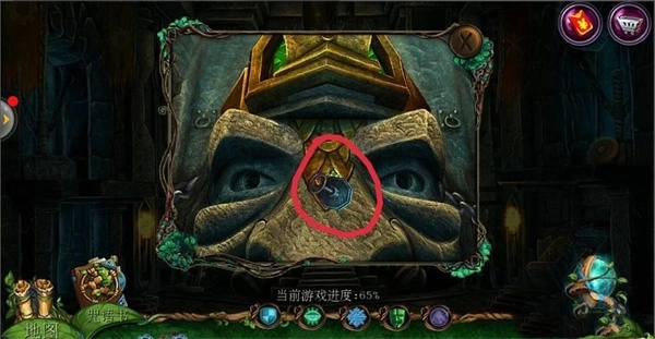 168、来到森林巨人这里,将法杖放入石头上,点击外侧的按钮,使三角形交换位置,当三角形的图片与外边按钮的图片完全一样时,完成游戏,就出法里奥。