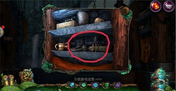 14、点击左下角的柜子,把锁部件放到上边,完成找东西的游戏,得到开塞钻。