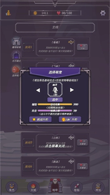 最后,玩家可以通过挑战升阶来获取萌宠,萌宠能够提升角色的基础攻击。