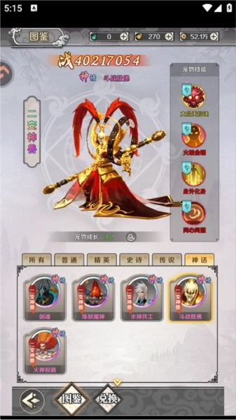 5、点击图鉴可以查看所有宠物,包括:普通、精英、史诗、传说以及神话级别的宠物;