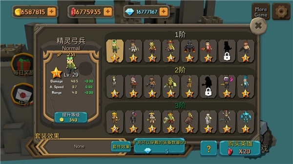 游戏里玩家通过战斗获取的体力能够用来招募英雄,相同类型的英雄进行合成后,可以进阶为更高级别的职业。