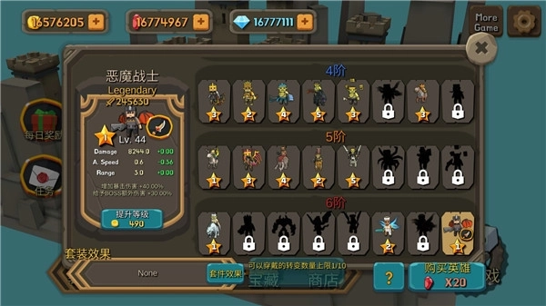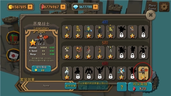 5、在首页点击英雄,还能无限制提升等级并购买新英雄哦;