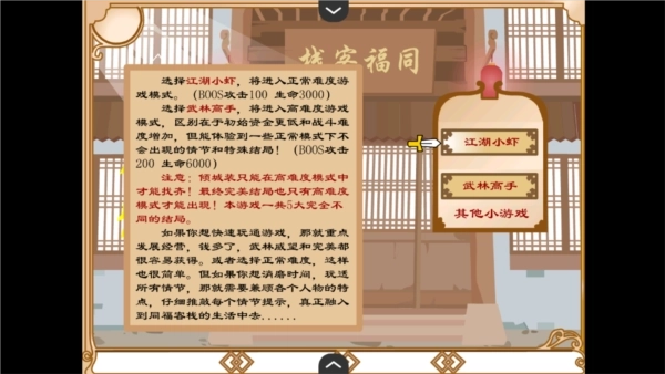 6、在游戏里,玩家既要经营同福客栈,又得兼顾任务的推进与自身能力的提升。游戏时长设定为100个游戏日,100天结束后需与BOSS展开对决。