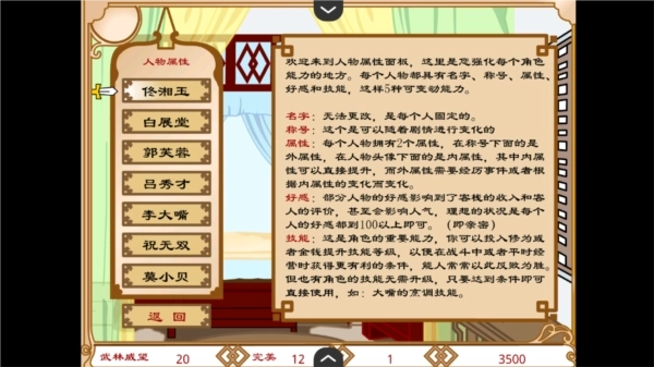 这绝对是一部经典之作,堪称雅俗共赏的巅峰!它以同福客栈众人的传奇经历为背景,凝聚了吕秀才的全部才思才得以完成。若非拥有顶尖才学,断难创作出这样的作品,而且它对武林的发展也产生了潜移默化的影响。花费5000文请秀才写下这本书,能极大提升人气与武林威望——人气直接+40,武林威望也+2!
