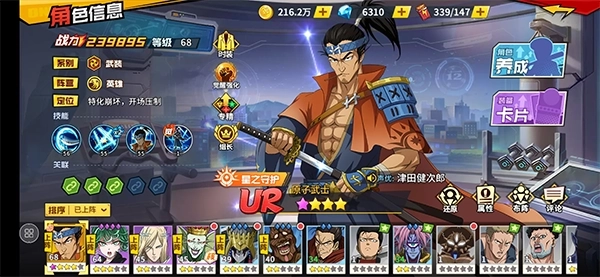 5、原子武士:作为压轴登场的英雄,他能让敌方全体进入崩坏状态,我方武装系英雄出手时可触发追击,且追击目标会锁定敌方当前血量最低的角色。有了原子武士,能和任意崩伤系英雄搭配,是推图向的流派,常与索尼克、黄金球组合使用。不过他在PK中的要求极为苛刻,必须搭配童帝才能发挥作用,否则难以立足。