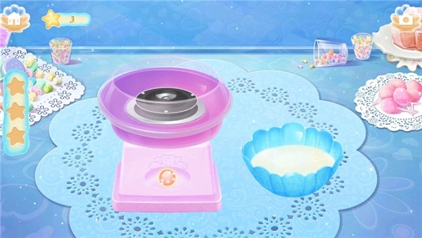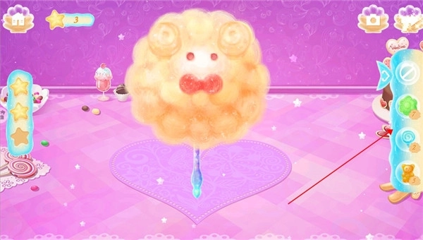 3、可以把糖粉这类材料放进棉花糖机来制作棉花糖,另外还得拖动容器去接住装饰物,同时要避开鲨鱼。