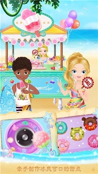2、体验海滨度假的惬意氛围,其中包含制作棉花糖、拼扇子等多种有趣的小游戏。