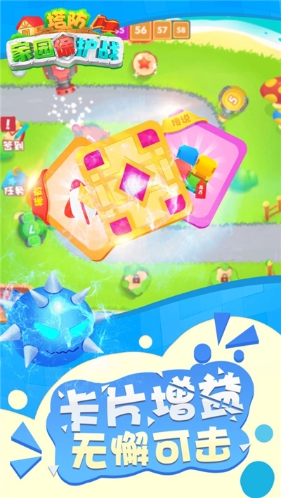 游戏里玩家需要合成各类炮塔并对其进行升级,以此抵御一波接一波的怪物侵袭,守护自己的家园。游戏内设有四种特色防御塔,每种都有独特优势:黄色炮塔擅长单体攻击,且攻击速度极快;红色炮塔具备群体AOE伤害,同时拥有超远射程;绿色炮塔能让怪物陷入中毒状态,使其持续流失生命值;蓝色炮塔则可冰冻怪物,大幅降低它们的移动速度。虽然战局规模不大,但可运用的策略却不少。玩家还能收集各类卡片,借助时光机穿越到下一个平行世界,翻开这些卡片就能获得相应的增益效果。游戏进程越往后,对玩家策略能力的考验就越大,合理安排防御阵容成为决定胜负的关键。酷炫的技能特效让玩家在战斗中横扫来犯的敌人,尽享刺激畅爽的游戏体验。