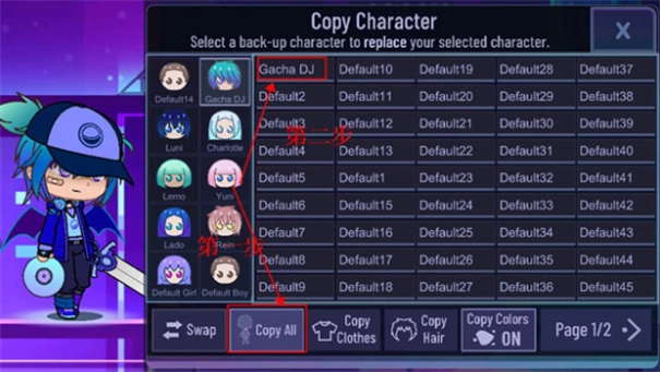 3、复制角色后选择“copyall”进行保存