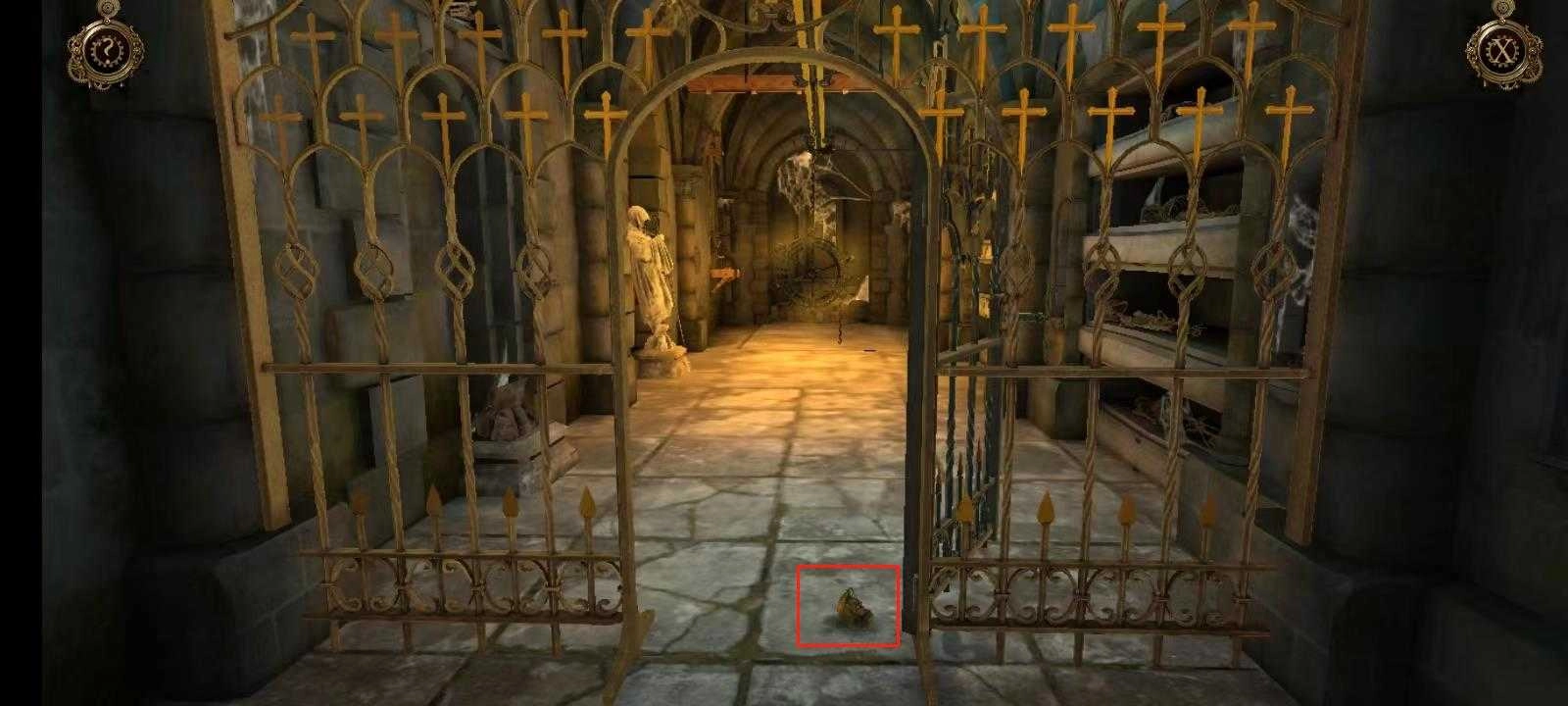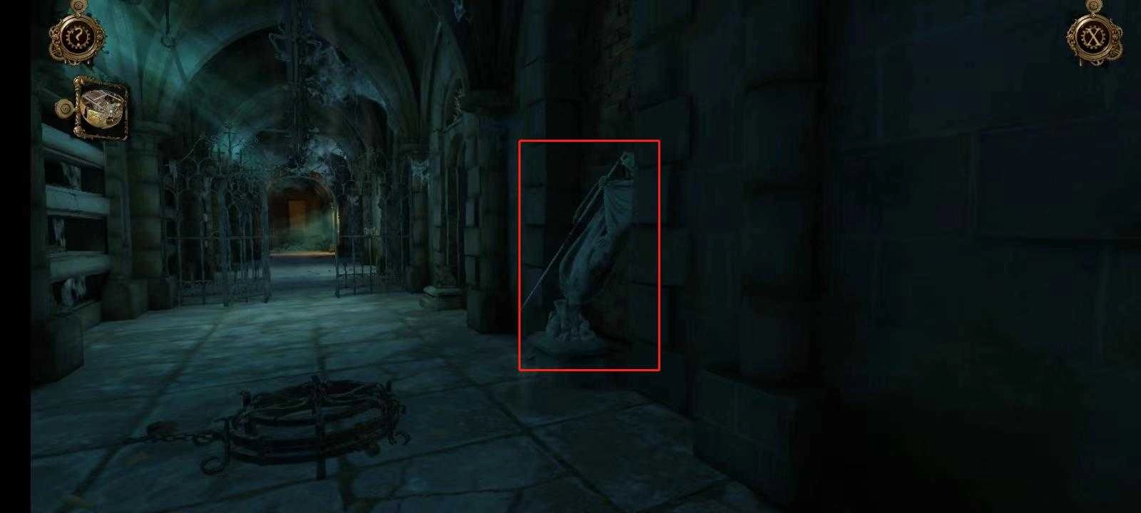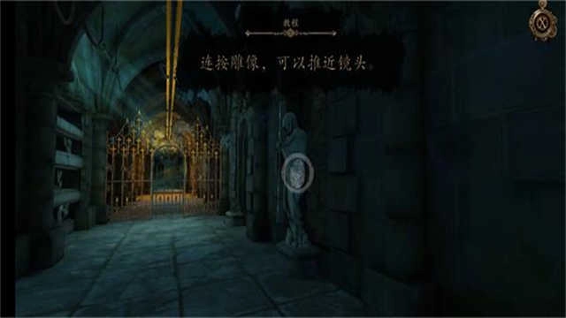 15、先双击石像,接着按住石像保持不动,直至门被推开,随后进入密室。