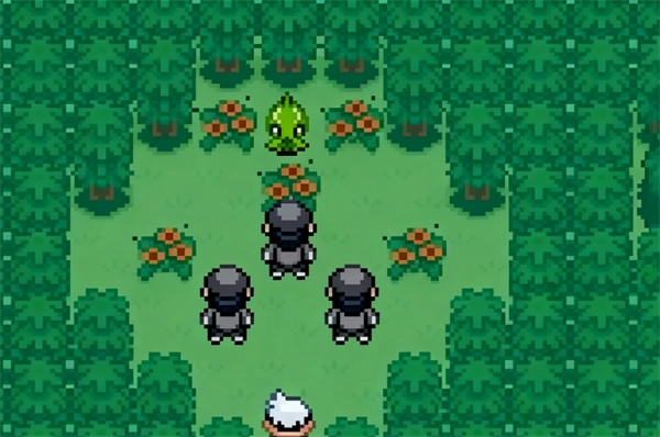 1、二周目开始,到达橙华森林,在橙华森立的深处,可以发现神兽雪拉比,进入特殊场景,发现火箭队的残党也在这搞事情,立马开始战斗,之后和雪拉比战斗收复神兽