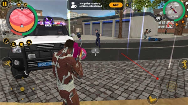按住视角对准目标方位,点击“绳索”技能,就能发射抓钩,即刻飞跃到高楼顶部或街道对面,熟练使用可在城市间自在穿梭。