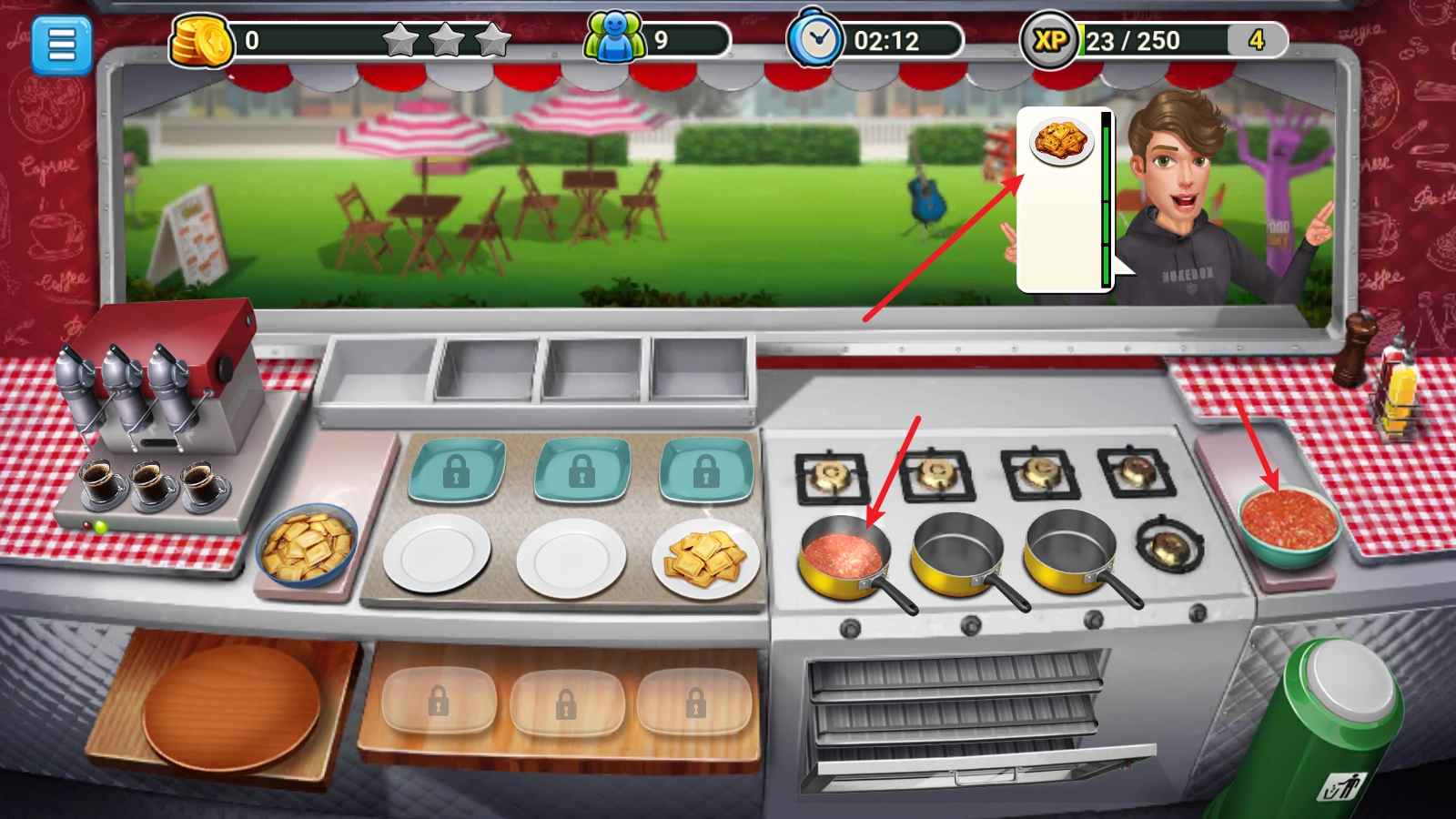 除了厨具外,还可以升级食材以增加收入。