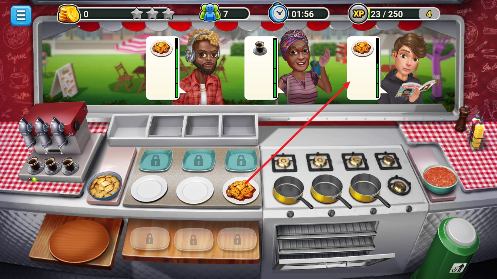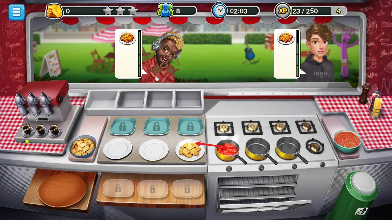 你可以花费金币与钻石来打造专属的餐车外观,搭配各式各样精美的装饰,助力你吸引更多顾客!